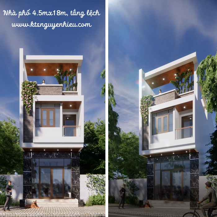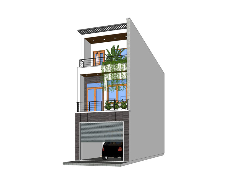 Thiết kế nhà chị Hà, diện tích 4mx17m. 3 tầng lệch. Tổng diện tích sàn 200m2