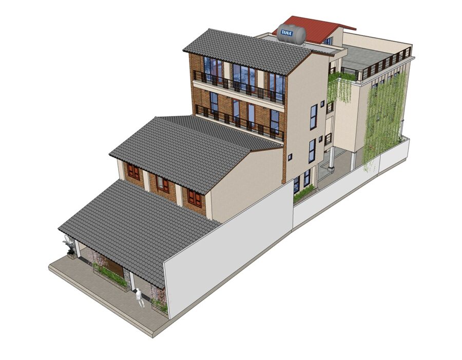 Tổng diện tích cải tạo và xây mới là 180m2 bao gồm: