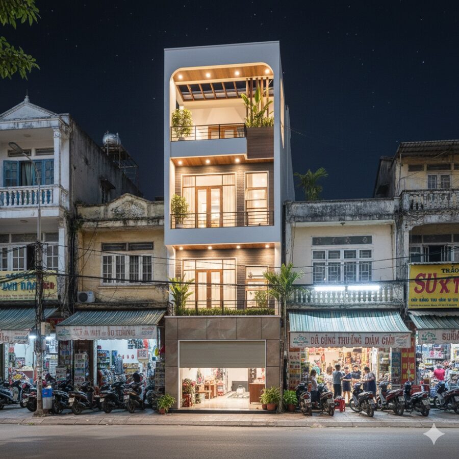 Nhà phố 3 tầng lệch 8m x 30mChủ đầu tư: Anh chị Tâm HằngĐịa điểm xây dựng: Long Xuyên, An GiangYêu