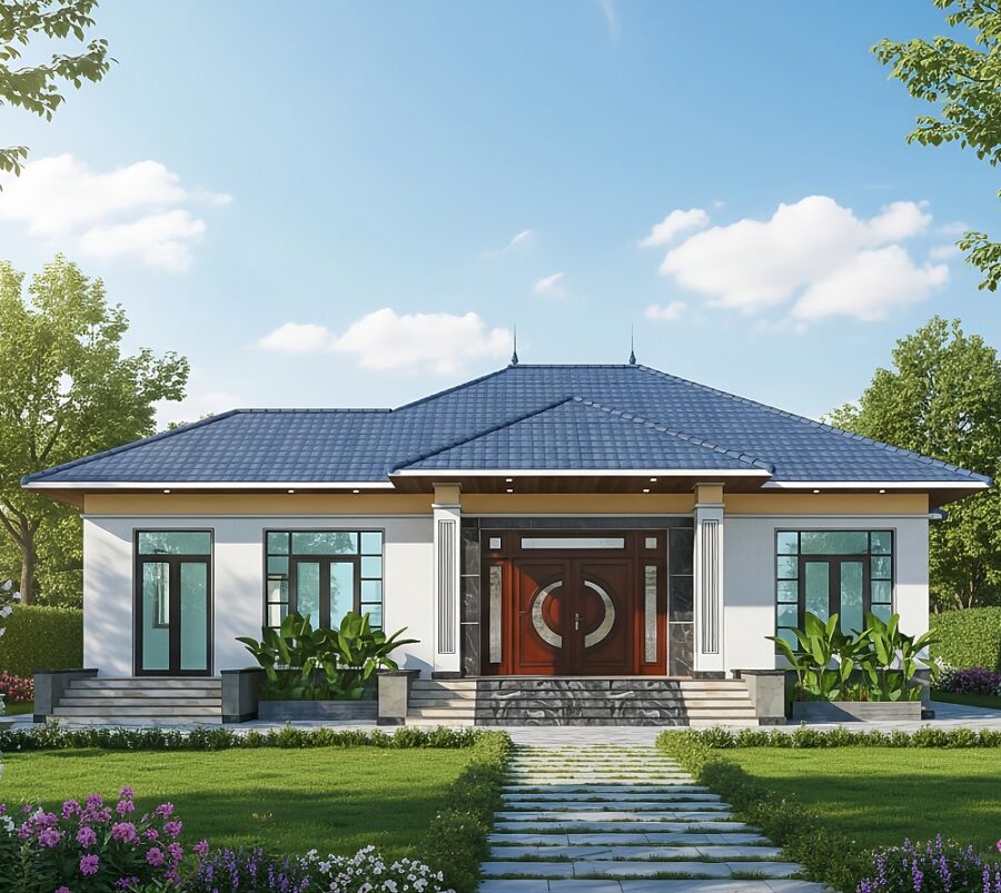 Biệt thự vườn 1 tầng xây dựng trên khu đất diện tích 13,5mx20m. Công năng có 2 phòng ngủ, phòng