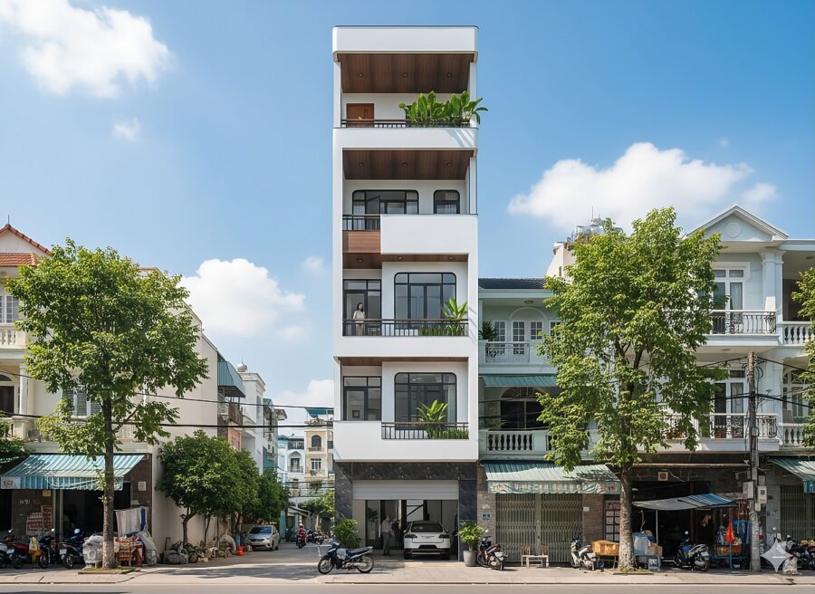 Nhà phố 3 tầng lệch 8m x 30mChủ đầu tư: Anh chị Tâm HằngĐịa điểm xây dựng: Long Xuyên, An GiangYêu