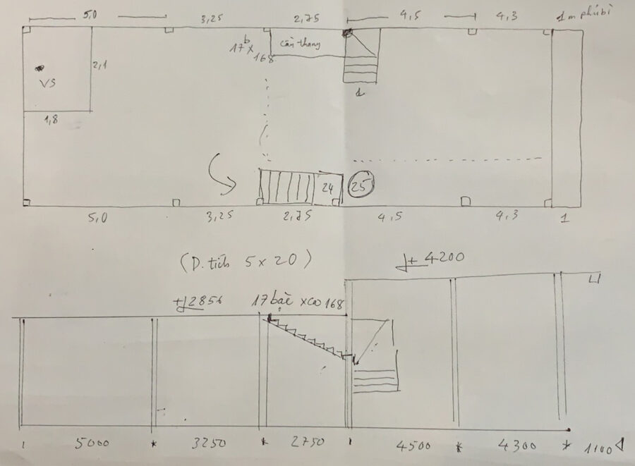 Giả bài toán khó thiết kế nhà phố 5x20m 2,5 tầng, chủ đầu tư mr Thiên Trường.