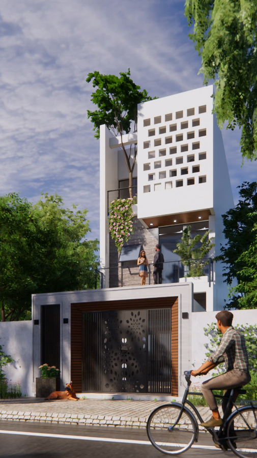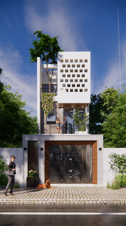 Thiết kế nhà phố 5x20m 3 tầng lệch.
