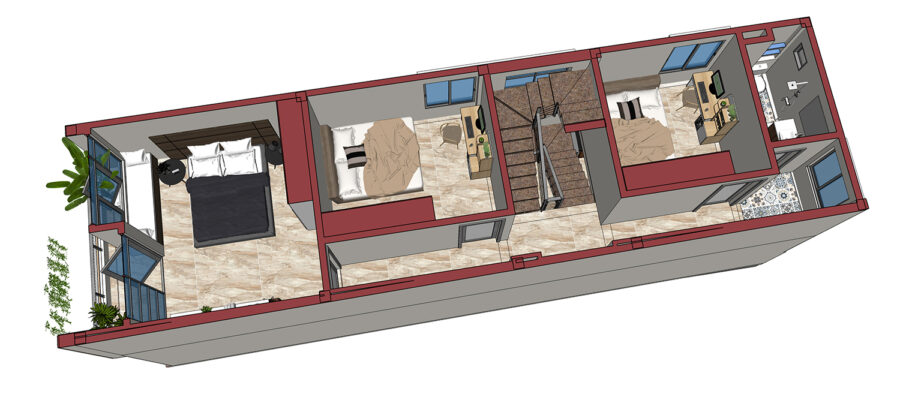 Tầng 2: Có 3 phòng ngủ, 1 vệ sinh chung