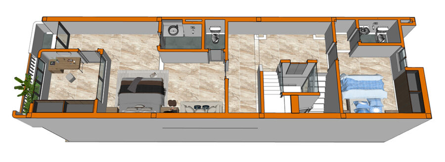 – Tầng 2, 3: Hai phòng ngủ khép kín