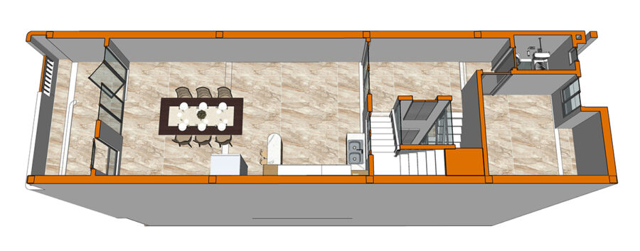 – Tầng 4: Phòng ăn, bếp, phòng sinh hoạt chung