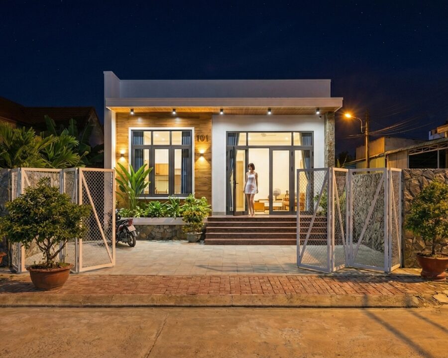 Công trình thiết kế theo phong cách hiện đại. Không gian nội thất có 3 phòng ngủ, phòng khách, bếp và 2 khu vệ sinh.