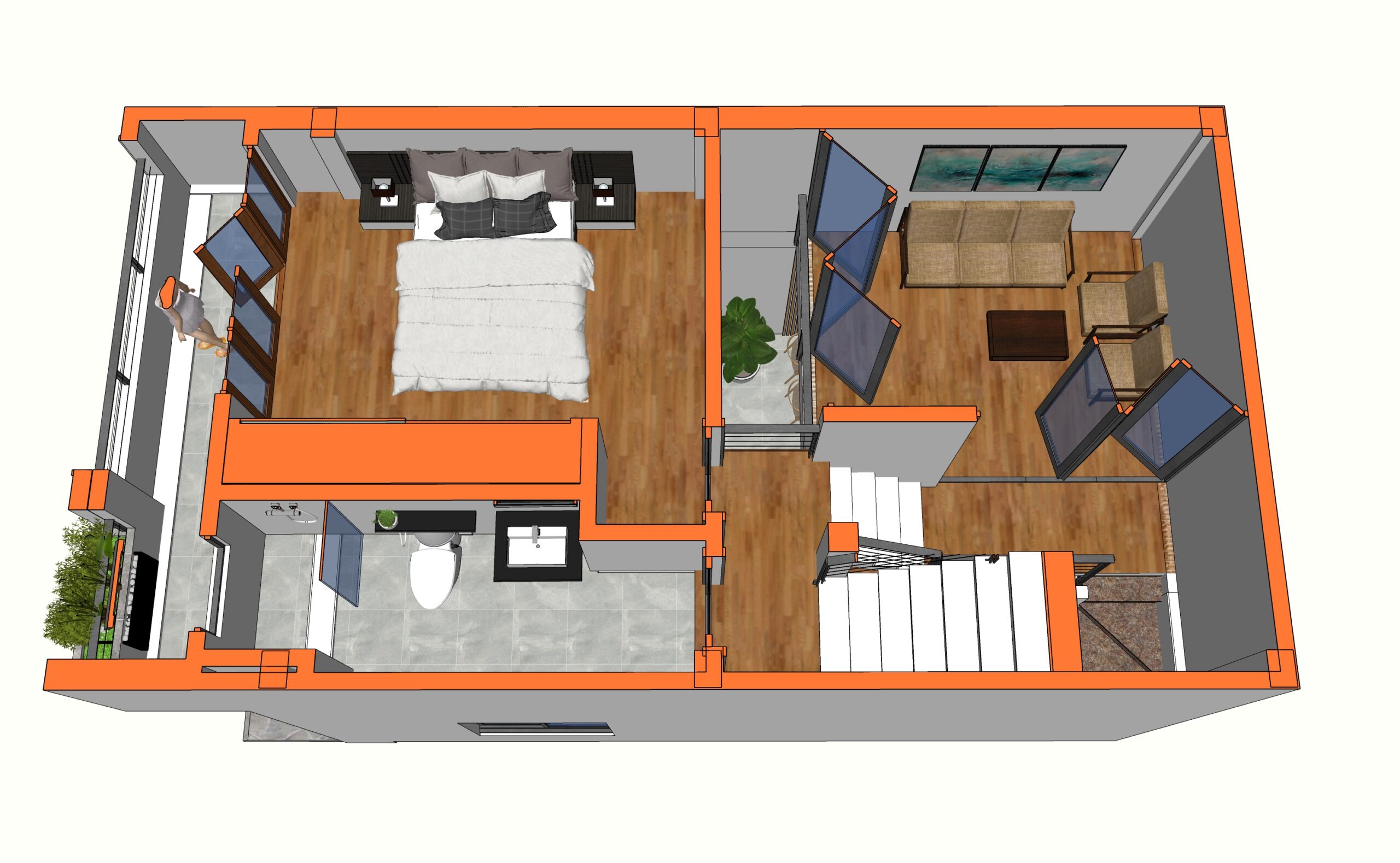 Tầng 2: 2 Phòng ngủ và 1 vệ sinh chung
