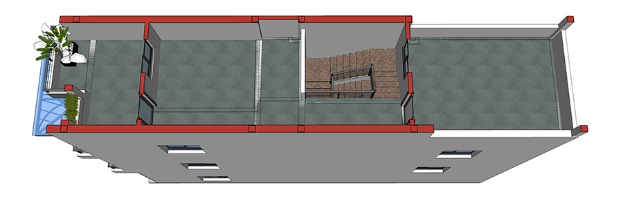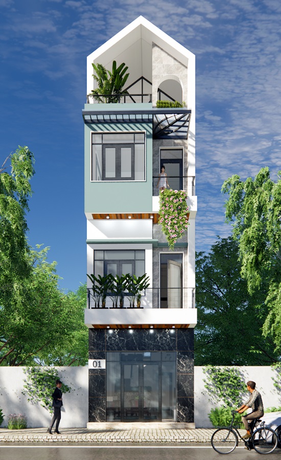 Nhà lệch tầng 4.1m x 18m 4 phòng ngủ.