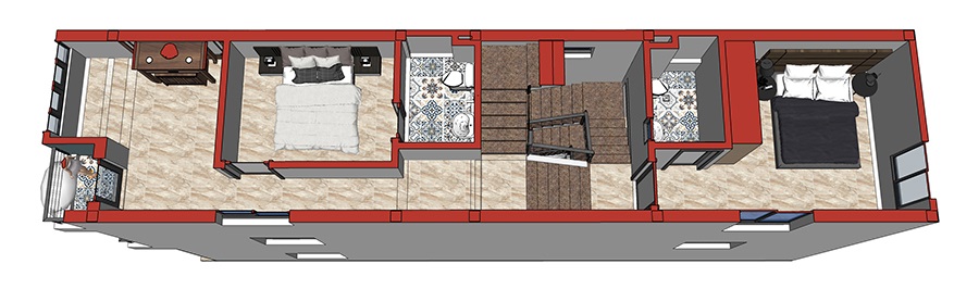Tầng 2: Không gian bếp, phòng ngủ Master