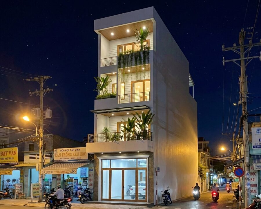 Nhà lệch tầng 5mx16m 4 tầng thiết kế theo phong cách hiện đại.