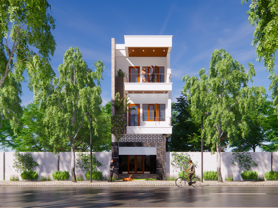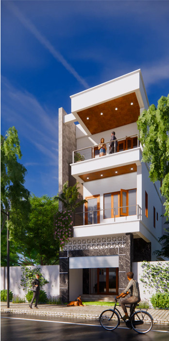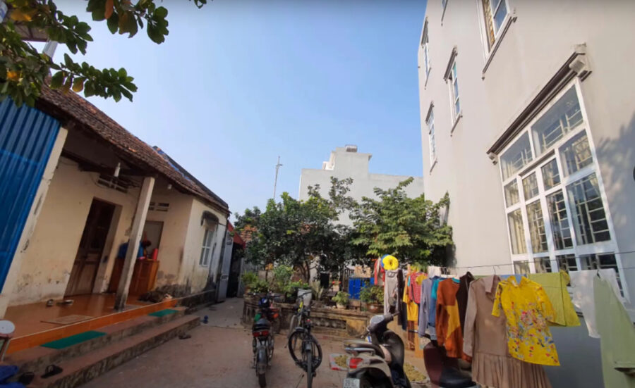 Xây dựng trên khu đất có 3 mặt thoáng. Mặt giáp đường, sân chung và đường phía sau nhà.