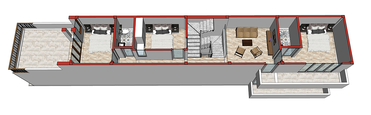 Công trình có 4 phòng ngủ. Phòng khách và không gian bếp liên thông ở tầng 1. Phòng thờ trên tầng 3. Công trình thiết kế theo phong cách hiện đại với chi phí xây dựng khoảng 1 tỷ.