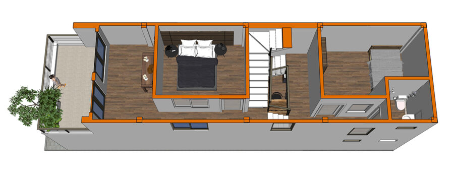 Tầng 2: 2 Phòng ngủ, 1 phòng thờ, vệ sinh chung