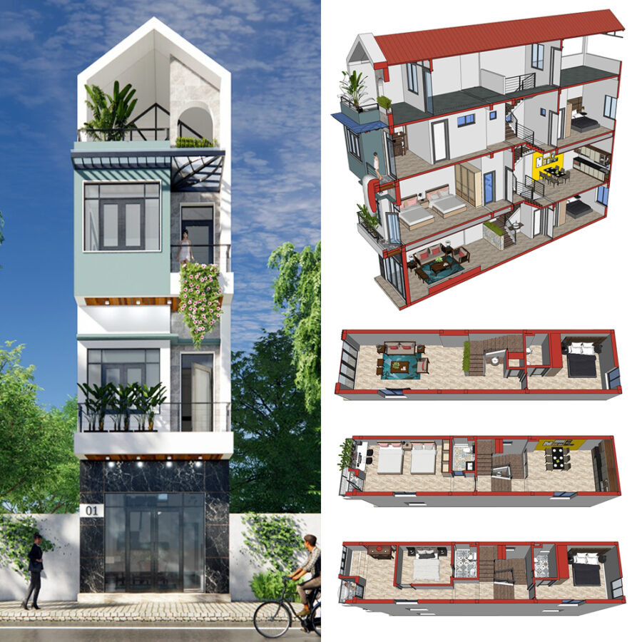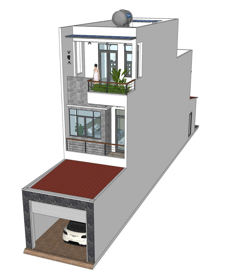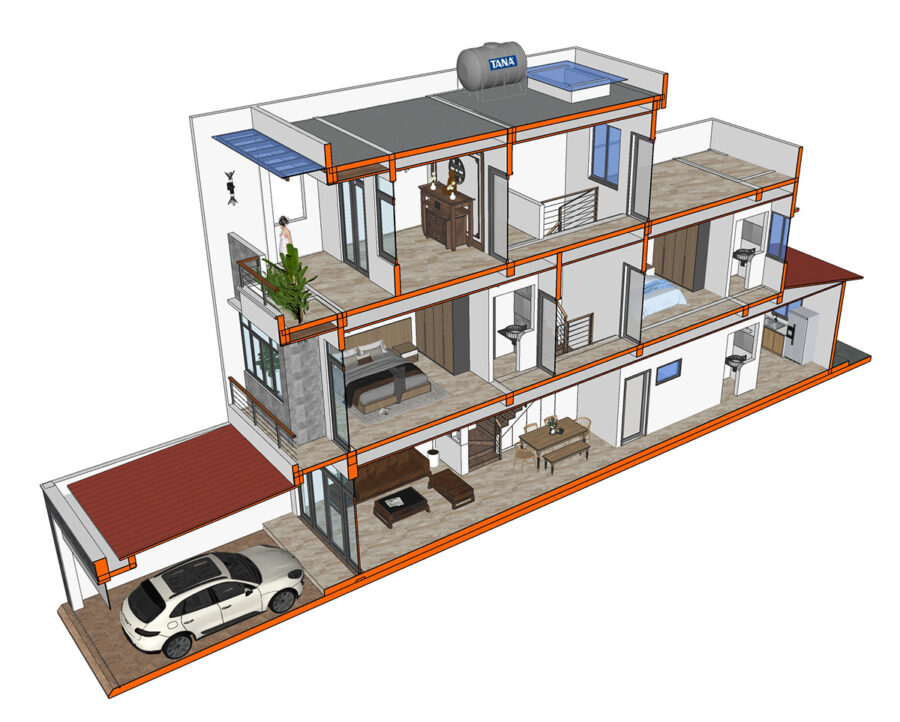 – Tầng 1: Gara, phòng khách, 1 phòng ngủ, bếp và khu vệ sinh