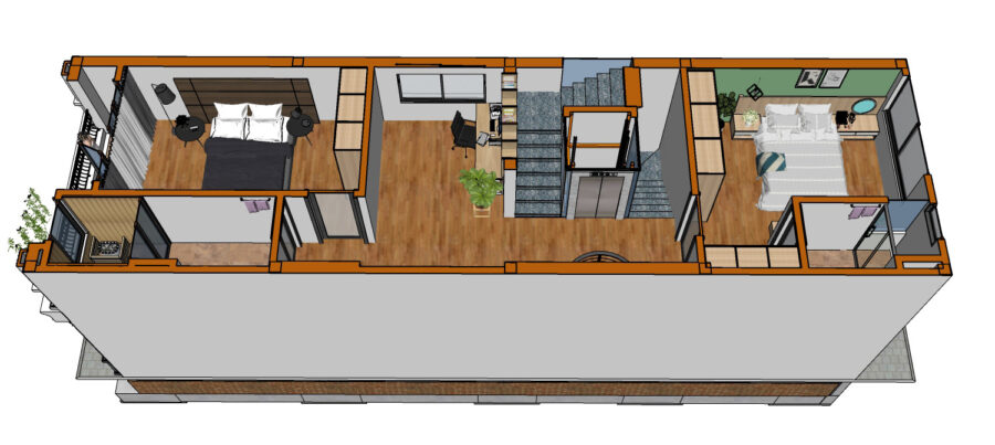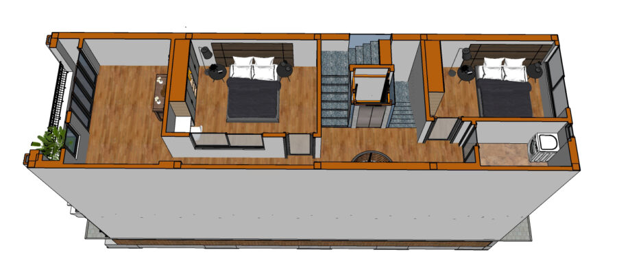 Tầng 2: 2 Phòng ngủ, 1 nhà vệ sinh chung