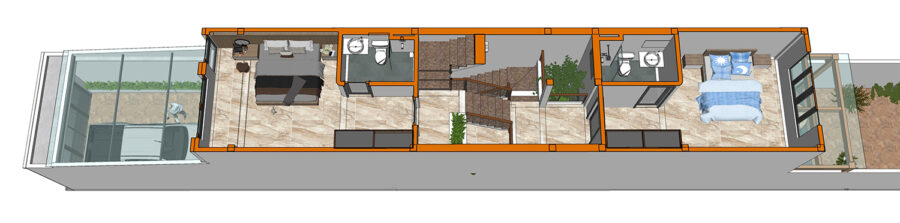– Tầng 1 và 2: có 3 phòng ngủ vệ sinh khép kín