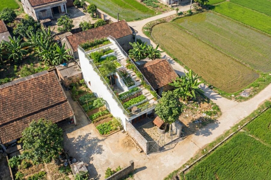 Nhà vườn 5mx20mTầng 1: Sân trước có giếng nước, tiếp đến là phòng khách bếp, 1 phòng ngủ nhỏ và