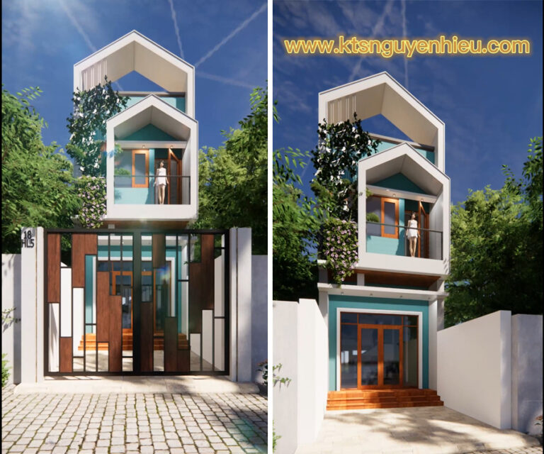 Nhà phố 2 tầng diện tích 4,4m x 20m.Có 3 phòng ngủ, không gian linh hoạt, cây xanh bố trí