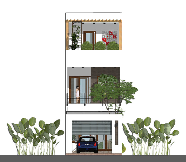 nhà ở diện tích nhỏ 5mx13,5m 4 phòng ngủ. Thiết kế lệch tầng