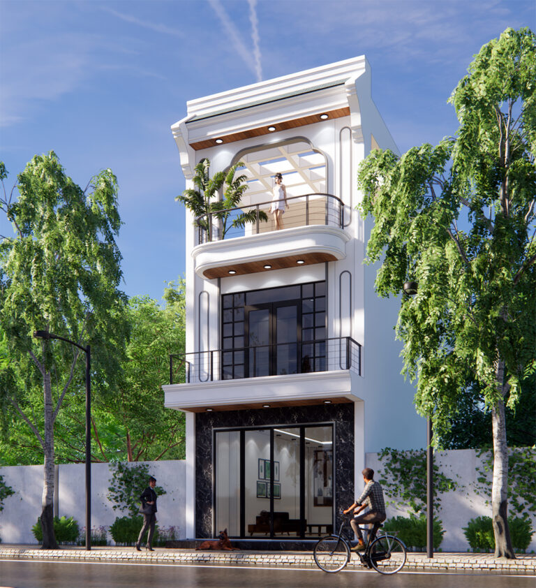Nhà phố 3 tầng lệch 8m x 30m chống ngậpChủ đầu tư: Anh chị Tâm HằngĐịa điểm xây dựng: Long Xuyên,